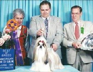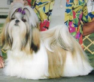 | SHENTE'S JOLEI IN YOUR DREAMS, TM858491/01 3-93 JOLEI I HAVE A DREAM x SHENTE’S NORMA JEAN CAN CH, USA CH | 04.08.1991 Кобель Золотой с белым |